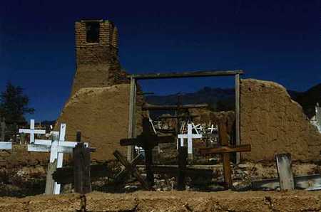 A view of the Taos Pueblo cemetary. |